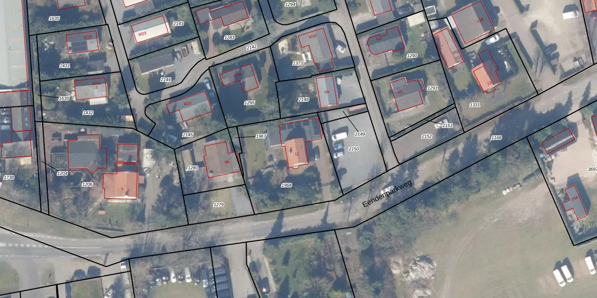 Het perceel waarop Eendenparkweg 11 staat heeft een oppervlakte van 875 m². Dit is een groot perceel. De perceeloppervlakte wordt geregistreerd door het Kadaster. Gedetailleerde informatie over de maten van dit perceel kunt u vinden in het rapport Kadastrale kaart met maatvoering van Eendenparkweg 11.