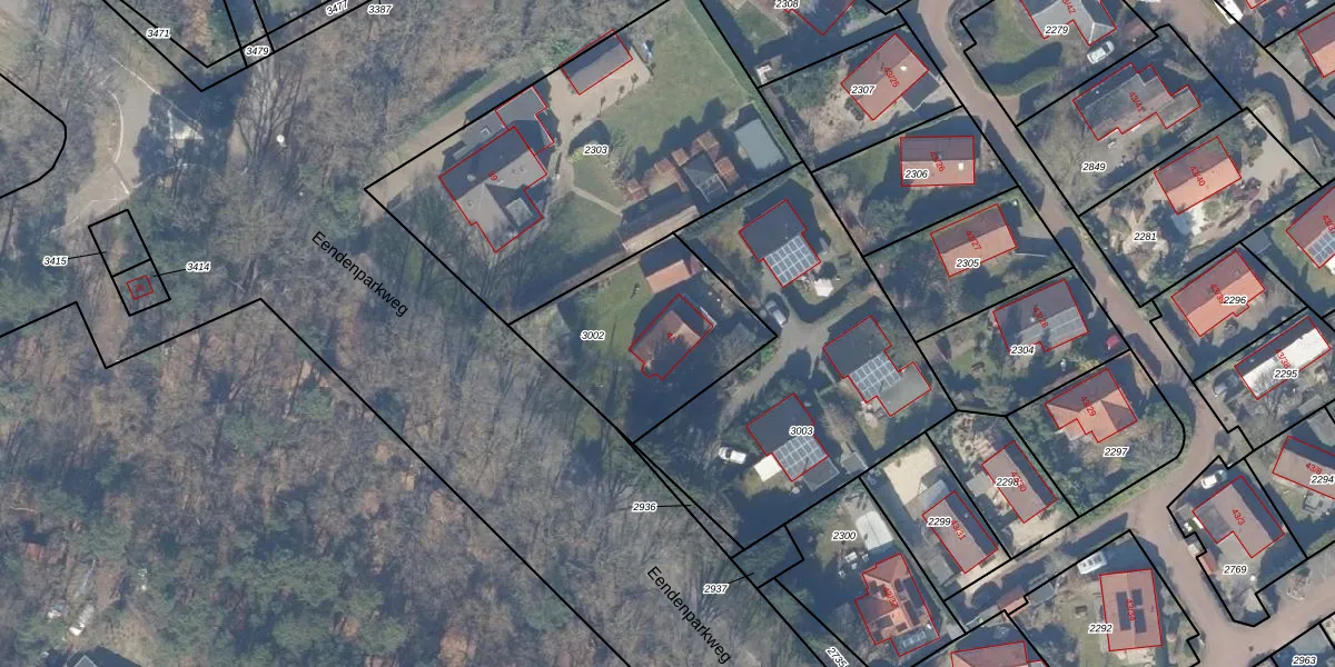 Eendenparkweg 41 is gelegen op kadastraal perceel EML00E3002. Deze kadastrale aanduiding is uniek en wordt gebruikt door het Kadaster om eigendomsrechten en andere zakelijke rechten vast te leggen. Het perceel maakt onderdeel uit van de kadastrale gemeente Ermelo.