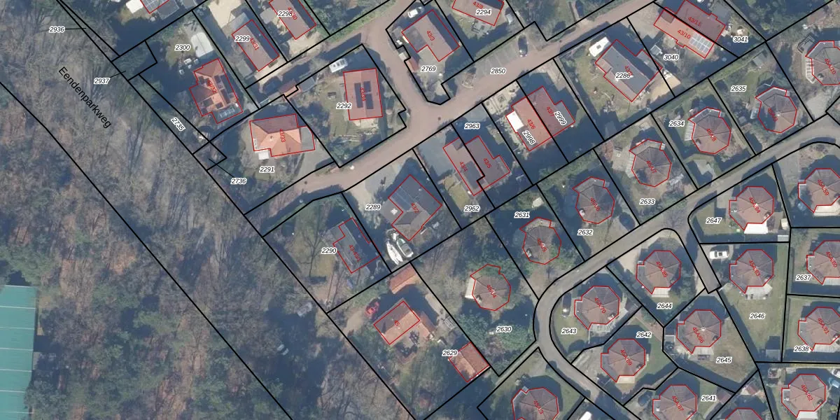 Eendenparkweg 43-2 is gelegen op kadastraal perceel EML00E2289. Deze kadastrale aanduiding is uniek en wordt gebruikt door het Kadaster om eigendomsrechten en andere zakelijke rechten vast te leggen. Het perceel maakt onderdeel uit van de kadastrale gemeente Ermelo.