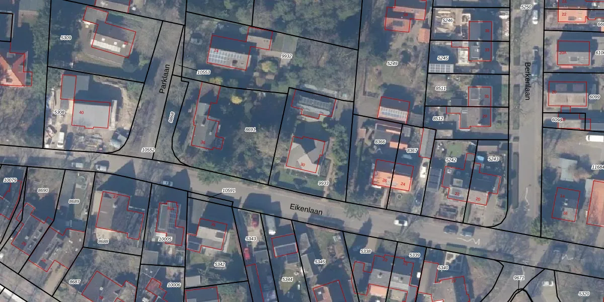 Eikenlaan 30 is gelegen op kadastraal perceel EML00F9933. Deze kadastrale aanduiding is uniek en wordt gebruikt door het Kadaster om eigendomsrechten en andere zakelijke rechten vast te leggen. Het perceel maakt onderdeel uit van de kadastrale gemeente Ermelo.