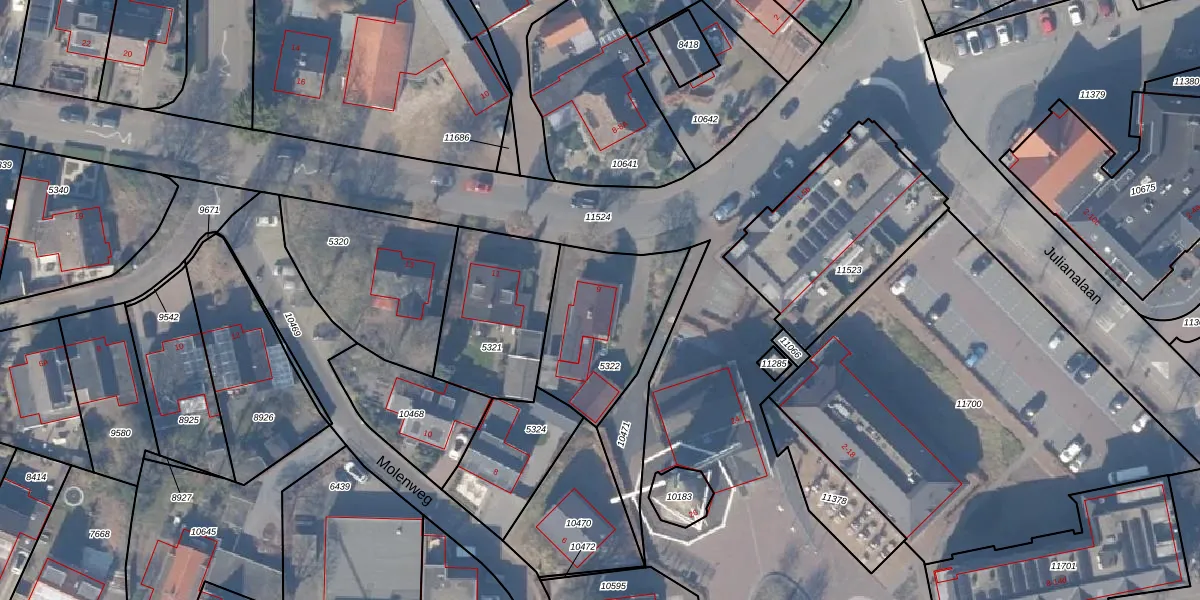 Gebruik de zoekbalk of klik op een perceel voor informatie over de adressen binnen dit perceel.