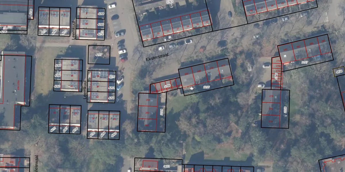 Het perceel waarop Eksterstraat 264-5 staat heeft een oppervlakte van 111 m². Dit is een middelgroot perceel. De perceeloppervlakte wordt geregistreerd door het Kadaster. Gedetailleerde informatie over de maten van dit perceel kunt u vinden in het rapport Kadastrale kaart met maatvoering van Eksterstraat 264-5.