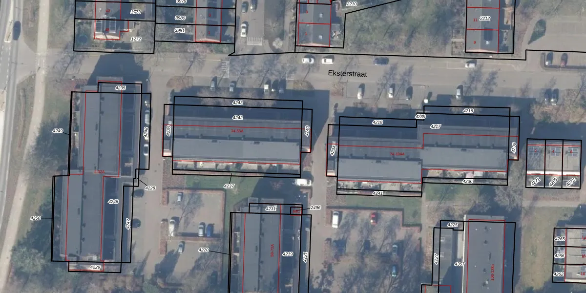 Eksterstraat 56-A is gelegen op kadastraal perceel EML00G4242. Deze kadastrale aanduiding is uniek en wordt gebruikt door het Kadaster om eigendomsrechten en andere zakelijke rechten vast te leggen. Het perceel maakt onderdeel uit van de kadastrale gemeente Ermelo.