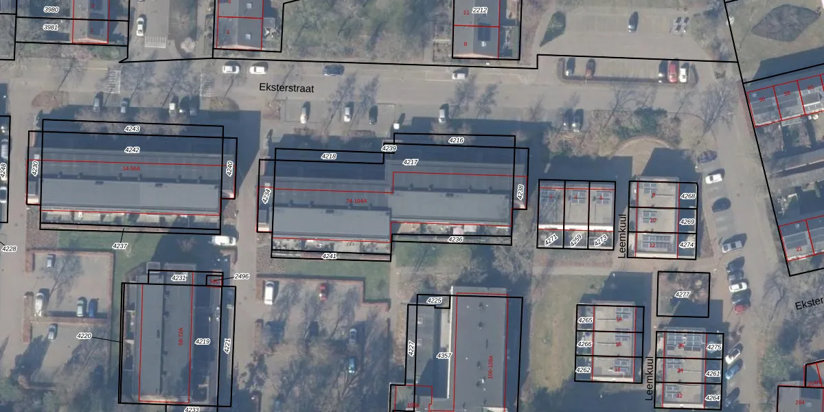 Eksterstraat 94-A is gelegen op kadastraal perceel EML00G4217. Deze kadastrale aanduiding is uniek en wordt gebruikt door het Kadaster om eigendomsrechten en andere zakelijke rechten vast te leggen. Het perceel maakt onderdeel uit van de kadastrale gemeente Ermelo.