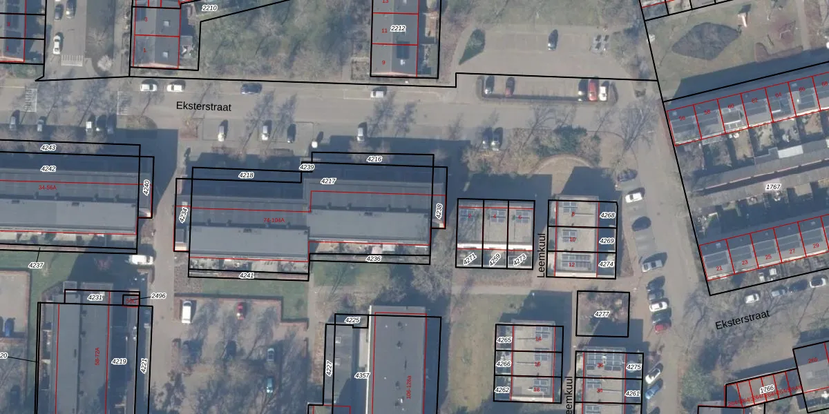 Het perceel waarop Eksterstraat 98 staat heeft een oppervlakte van 1305 m². Dit is een zeer groot perceel. De perceeloppervlakte wordt geregistreerd door het Kadaster. Gedetailleerde informatie over de maten van dit perceel kunt u vinden in het rapport Kadastrale kaart met maatvoering van Eksterstraat 98.