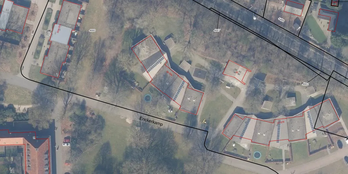 Enckerkamp 33-a is gelegen op kadastraal perceel EML00I4660. Deze kadastrale aanduiding is uniek en wordt gebruikt door het Kadaster om eigendomsrechten en andere zakelijke rechten vast te leggen. Het perceel maakt onderdeel uit van de kadastrale gemeente Ermelo.