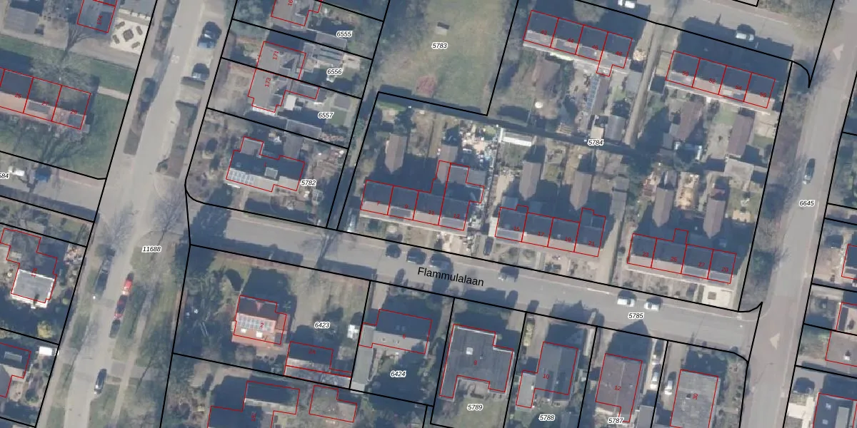 Flammulalaan 11 is gelegen op kadastraal perceel EML00F5784. Deze kadastrale aanduiding is uniek en wordt gebruikt door het Kadaster om eigendomsrechten en andere zakelijke rechten vast te leggen. Het perceel maakt onderdeel uit van de kadastrale gemeente Ermelo.