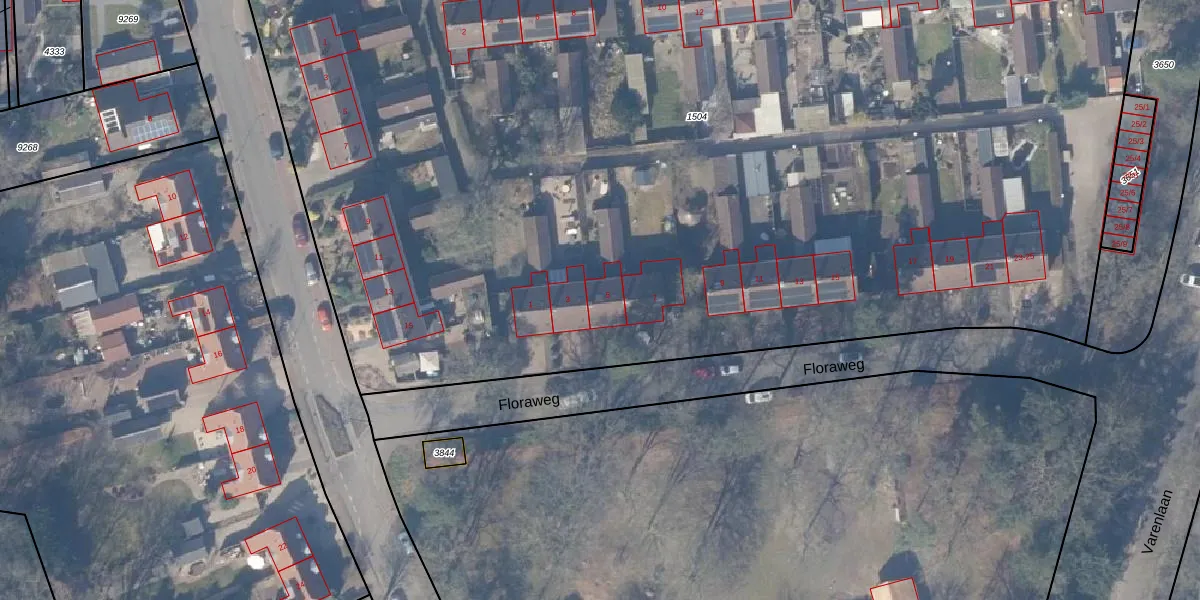 Het perceel waarop Floraweg 5 staat heeft een oppervlakte van 9659 m². Dit is een zeer groot perceel. De perceeloppervlakte wordt geregistreerd door het Kadaster. Gedetailleerde informatie over de maten van dit perceel kunt u vinden in het rapport Kadastrale kaart met maatvoering van Floraweg 5.