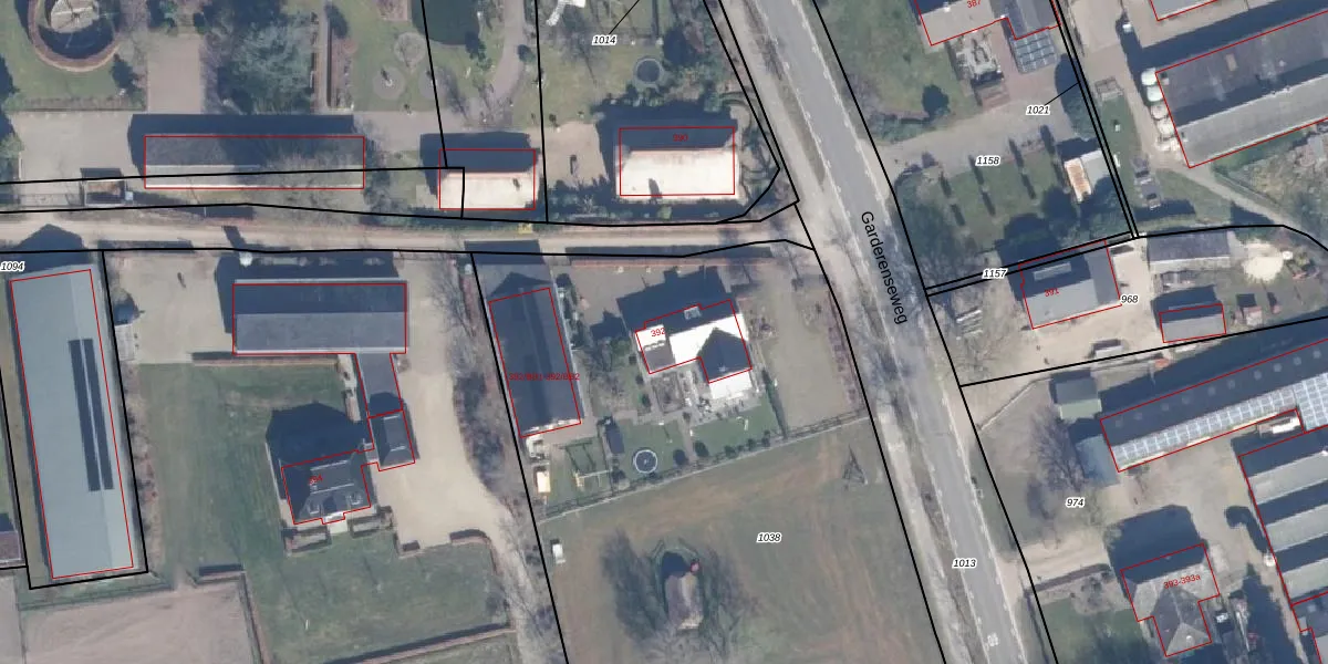 Garderenseweg 392 is gelegen op kadastraal perceel EML00C1038. Deze kadastrale aanduiding is uniek en wordt gebruikt door het Kadaster om eigendomsrechten en andere zakelijke rechten vast te leggen. Het perceel maakt onderdeel uit van de kadastrale gemeente Ermelo.
