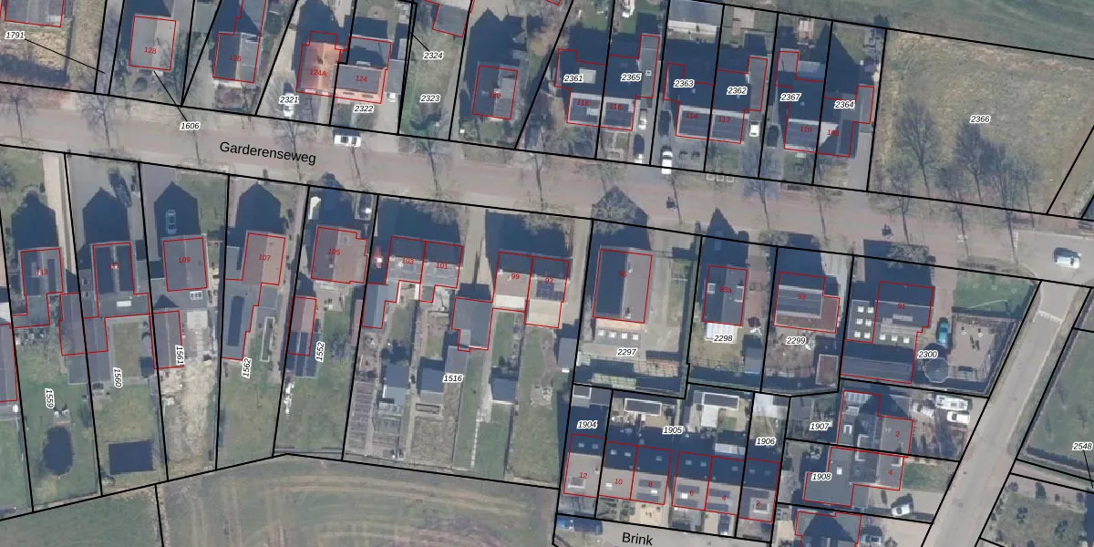 Het perceel waarop Garderenseweg 97 staat heeft een oppervlakte van 1952 m². Dit is een zeer groot perceel. De perceeloppervlakte wordt geregistreerd door het Kadaster. Gedetailleerde informatie over de maten van dit perceel kunt u vinden in het rapport Kadastrale kaart met maatvoering van Garderenseweg 97.