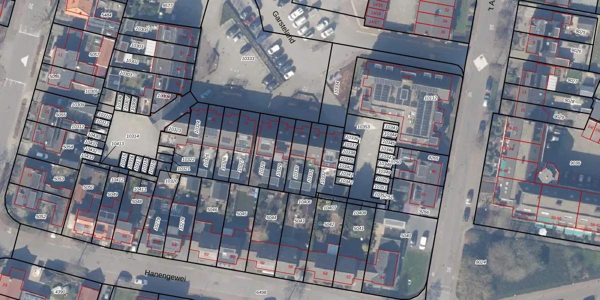 Gebruik de zoekbalk of klik op een perceel voor informatie over de adressen binnen dit perceel.