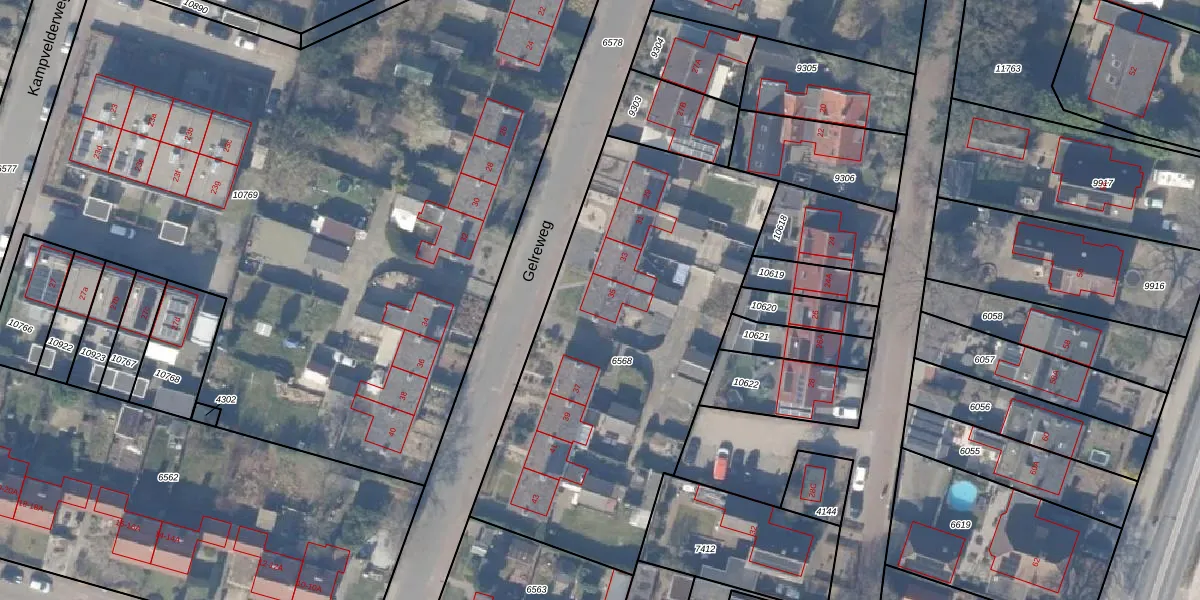 Gelreweg 35 is gelegen op kadastraal perceel EML00F6568. Deze kadastrale aanduiding is uniek en wordt gebruikt door het Kadaster om eigendomsrechten en andere zakelijke rechten vast te leggen. Het perceel maakt onderdeel uit van de kadastrale gemeente Ermelo.