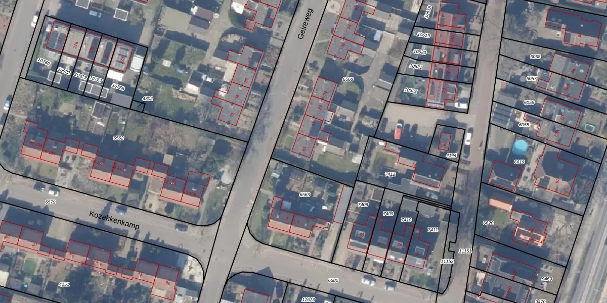 Het perceel waarop Gelreweg 43 staat heeft een oppervlakte van 2000 m². Dit is een zeer groot perceel. De perceeloppervlakte wordt geregistreerd door het Kadaster. Gedetailleerde informatie over de maten van dit perceel kunt u vinden in het rapport Kadastrale kaart met maatvoering van Gelreweg 43.