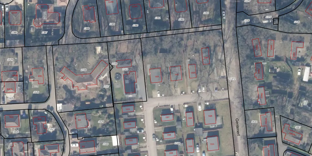 Het perceel waarop Gentenerf 7-01 staat heeft een oppervlakte van 8124 m². Dit is een zeer groot perceel. De perceeloppervlakte wordt geregistreerd door het Kadaster. Gedetailleerde informatie over de maten van dit perceel kunt u vinden in het rapport Kadastrale kaart met maatvoering van Gentenerf 7-01.