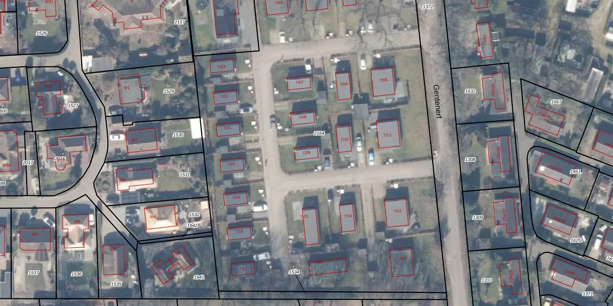 Het perceel waarop Gentenerf 7-09 staat heeft een oppervlakte van 8124 m². Dit is een zeer groot perceel. De perceeloppervlakte wordt geregistreerd door het Kadaster. Gedetailleerde informatie over de maten van dit perceel kunt u vinden in het rapport Kadastrale kaart met maatvoering van Gentenerf 7-09.
