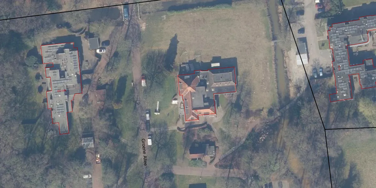 Het perceel waarop Groene Allee 74 staat heeft een oppervlakte van 4,8 ha. Dit is een zeer groot perceel. De perceeloppervlakte wordt geregistreerd door het Kadaster. Gedetailleerde informatie over de maten van dit perceel kunt u vinden in het rapport Kadastrale kaart met maatvoering van Groene Allee 74.