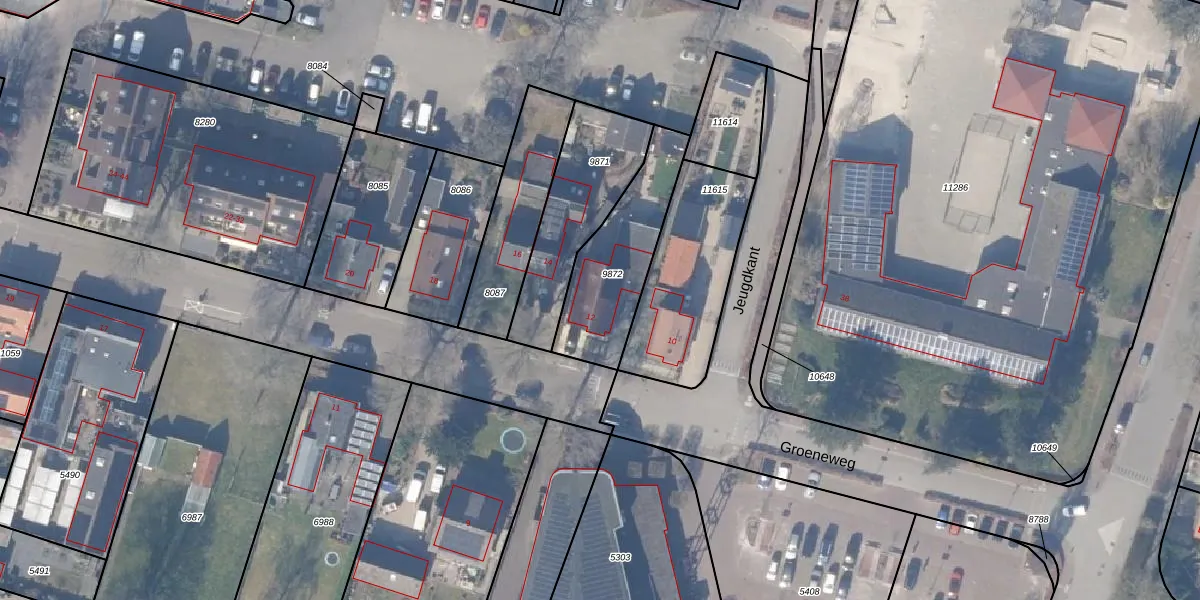 Gebruik de zoekbalk of klik op een perceel voor informatie over de adressen binnen dit perceel.