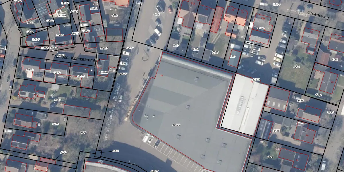 Het perceel waarop Groeneweg 37 staat heeft een oppervlakte van 6167 m². Dit is een zeer groot perceel. De perceeloppervlakte wordt geregistreerd door het Kadaster. Gedetailleerde informatie over de maten van dit perceel kunt u vinden in het rapport Kadastrale kaart met maatvoering van Groeneweg 37.