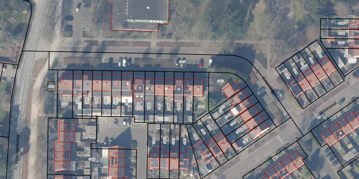 Gebruik de zoekbalk of klik op een perceel voor informatie over de adressen binnen dit perceel.