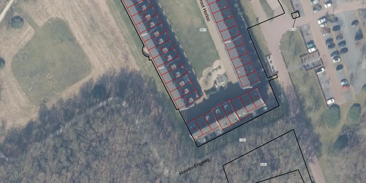Groot Horloo 32 is gelegen op kadastraal perceel EML00I5971. Deze kadastrale aanduiding is uniek en wordt gebruikt door het Kadaster om eigendomsrechten en andere zakelijke rechten vast te leggen. Het perceel maakt onderdeel uit van de kadastrale gemeente Ermelo.