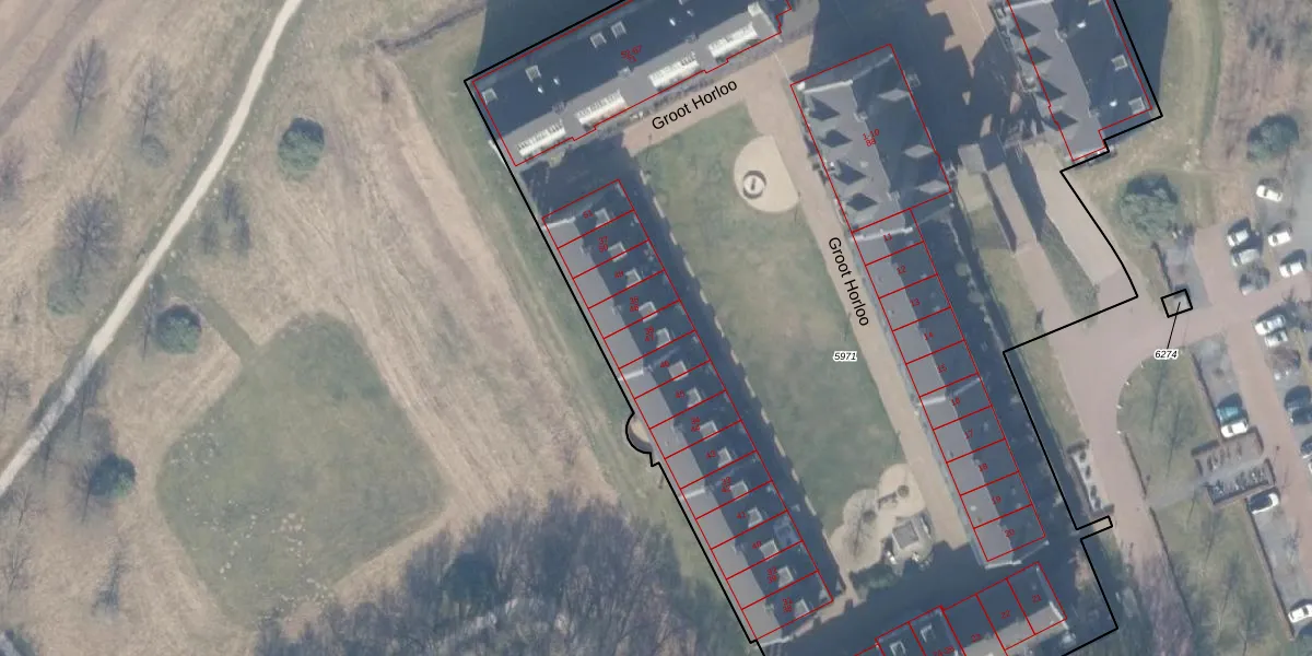 Het perceel waarop Groot Horloo 35 staat heeft een oppervlakte van 1,0 ha. Dit is een zeer groot perceel. De perceeloppervlakte wordt geregistreerd door het Kadaster. Gedetailleerde informatie over de maten van dit perceel kunt u vinden in het rapport Kadastrale kaart met maatvoering van Groot Horloo 35.