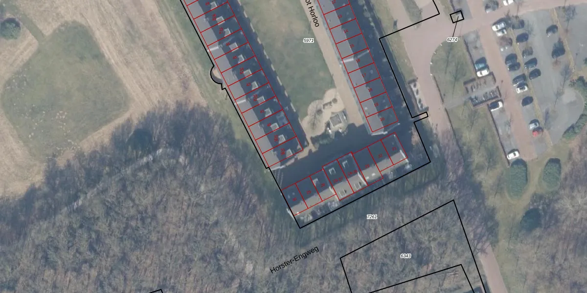 Het perceel waarop Groot Horloo 38 staat heeft een oppervlakte van 1,0 ha. Dit is een zeer groot perceel. De perceeloppervlakte wordt geregistreerd door het Kadaster. Gedetailleerde informatie over de maten van dit perceel kunt u vinden in het rapport Kadastrale kaart met maatvoering van Groot Horloo 38.