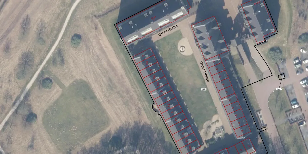 Het perceel waarop Groot Horloo 48 staat heeft een oppervlakte van 1,0 ha. Dit is een zeer groot perceel. De perceeloppervlakte wordt geregistreerd door het Kadaster. Gedetailleerde informatie over de maten van dit perceel kunt u vinden in het rapport Kadastrale kaart met maatvoering van Groot Horloo 48.