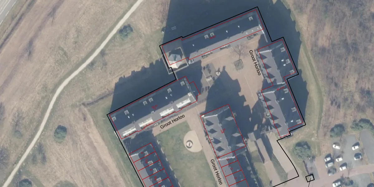 Het perceel waarop Groot Horloo 63 staat heeft een oppervlakte van 1,0 ha. Dit is een zeer groot perceel. De perceeloppervlakte wordt geregistreerd door het Kadaster. Gedetailleerde informatie over de maten van dit perceel kunt u vinden in het rapport Kadastrale kaart met maatvoering van Groot Horloo 63.
