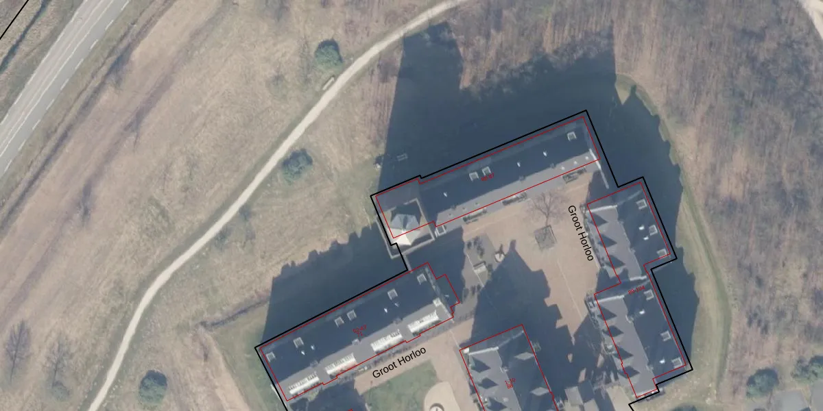 Het perceel waarop Groot Horloo 72 staat heeft een oppervlakte van 1,0 ha. Dit is een zeer groot perceel. De perceeloppervlakte wordt geregistreerd door het Kadaster. Gedetailleerde informatie over de maten van dit perceel kunt u vinden in het rapport Kadastrale kaart met maatvoering van Groot Horloo 72.