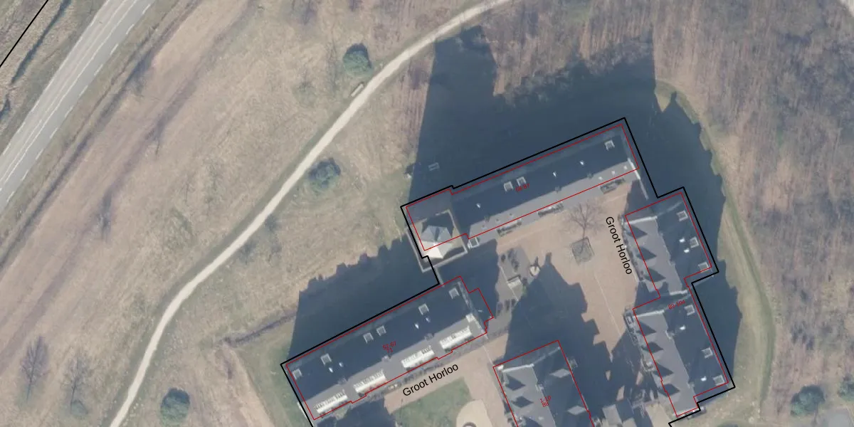Het perceel waarop Groot Horloo 76 staat heeft een oppervlakte van 1,0 ha. Dit is een zeer groot perceel. De perceeloppervlakte wordt geregistreerd door het Kadaster. Gedetailleerde informatie over de maten van dit perceel kunt u vinden in het rapport Kadastrale kaart met maatvoering van Groot Horloo 76.