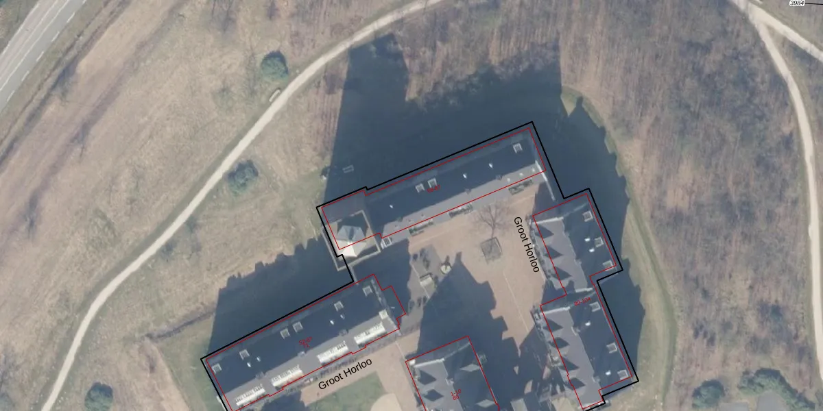 Het perceel waarop Groot Horloo 77 staat heeft een oppervlakte van 1,0 ha. Dit is een zeer groot perceel. De perceeloppervlakte wordt geregistreerd door het Kadaster. Gedetailleerde informatie over de maten van dit perceel kunt u vinden in het rapport Kadastrale kaart met maatvoering van Groot Horloo 77.