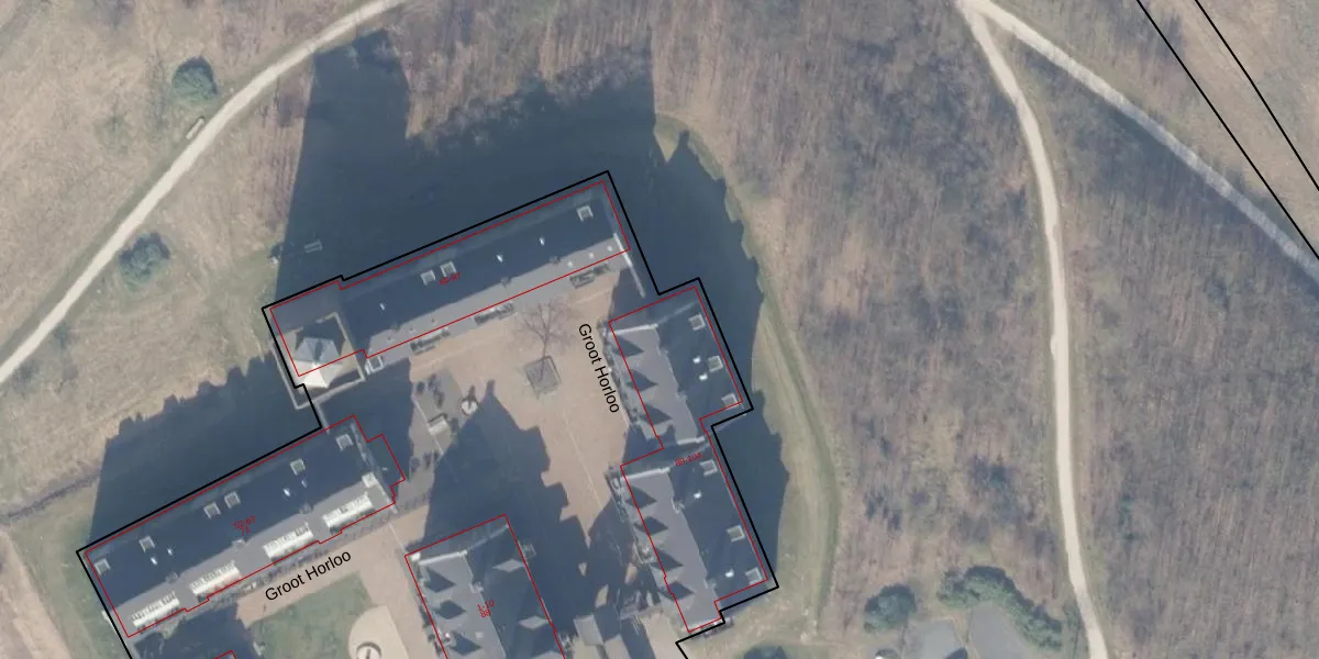 Het perceel waarop Groot Horloo 92 staat heeft een oppervlakte van 1,0 ha. Dit is een zeer groot perceel. De perceeloppervlakte wordt geregistreerd door het Kadaster. Gedetailleerde informatie over de maten van dit perceel kunt u vinden in het rapport Kadastrale kaart met maatvoering van Groot Horloo 92.
