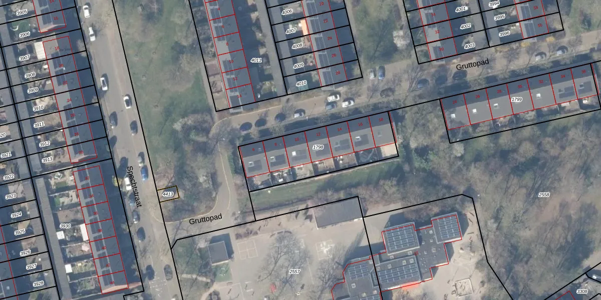 Het perceel waarop Gruttopad 10 staat heeft een oppervlakte van 816 m². Dit is een groot perceel. De perceeloppervlakte wordt geregistreerd door het Kadaster. Gedetailleerde informatie over de maten van dit perceel kunt u vinden in het rapport Kadastrale kaart met maatvoering van Gruttopad 10.