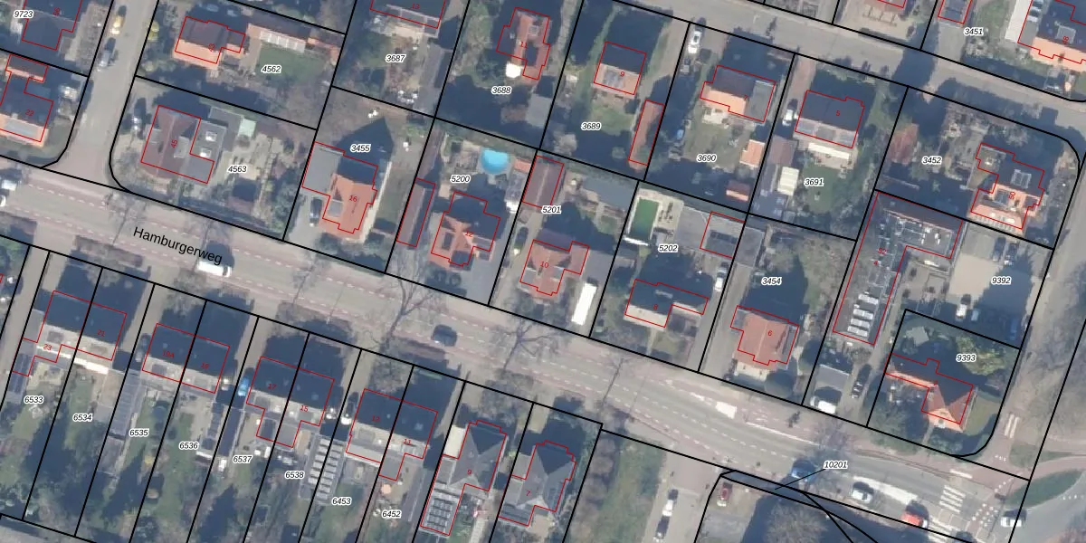 Het perceel waarop Hamburgerweg 10 staat heeft een oppervlakte van 593 m². Dit is een groot perceel. De perceeloppervlakte wordt geregistreerd door het Kadaster. Gedetailleerde informatie over de maten van dit perceel kunt u vinden in het rapport Kadastrale kaart met maatvoering van Hamburgerweg 10.
