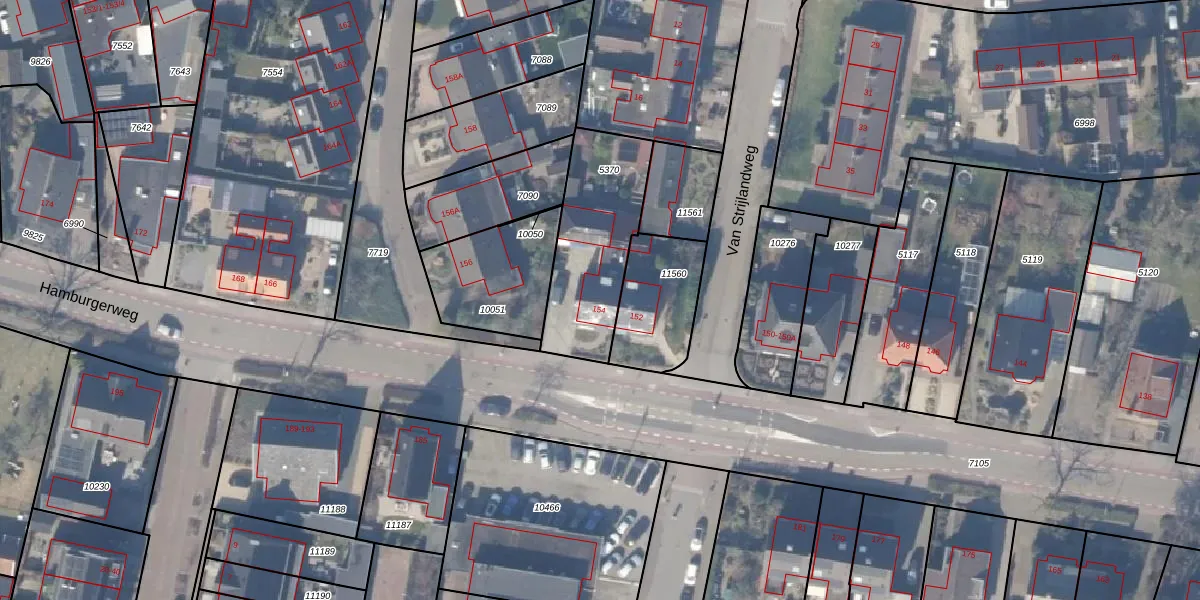 Gebruik de zoekbalk of klik op een perceel voor informatie over de adressen binnen dit perceel.