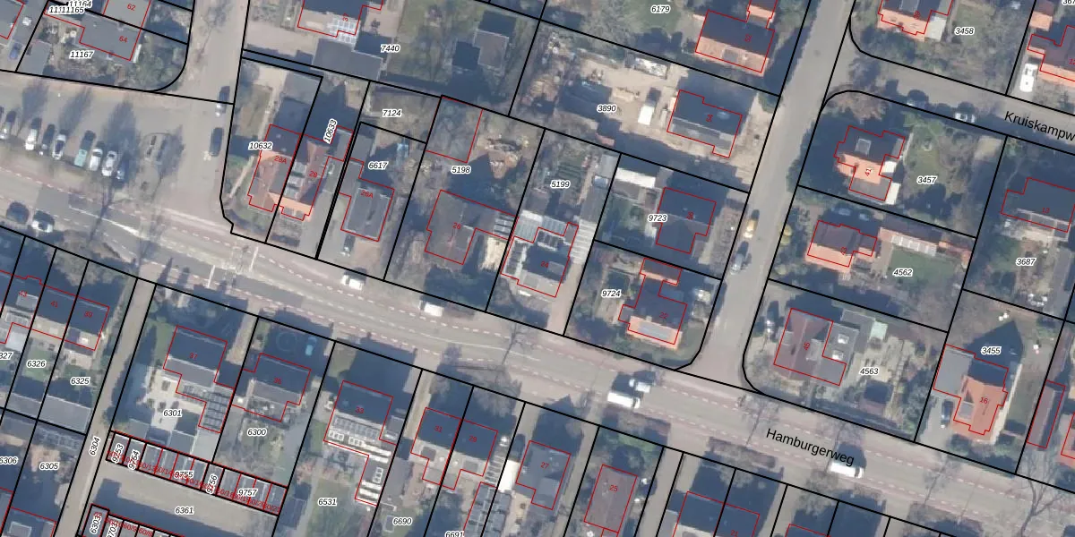 Het perceel waarop Hamburgerweg 24 staat heeft een oppervlakte van 537 m². Dit is een groot perceel. De perceeloppervlakte wordt geregistreerd door het Kadaster. Gedetailleerde informatie over de maten van dit perceel kunt u vinden in het rapport Kadastrale kaart met maatvoering van Hamburgerweg 24.