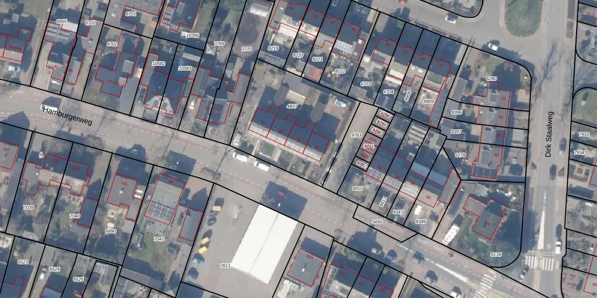 Het perceel waarop Hamburgerweg 66 staat heeft een oppervlakte van 1094 m². Dit is een zeer groot perceel. De perceeloppervlakte wordt geregistreerd door het Kadaster. Gedetailleerde informatie over de maten van dit perceel kunt u vinden in het rapport Kadastrale kaart met maatvoering van Hamburgerweg 66.