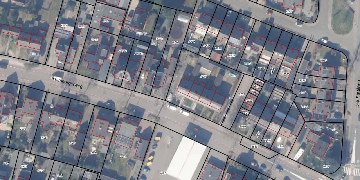 Het perceel waarop Hamburgerweg 70 staat heeft een oppervlakte van 1094 m². Dit is een zeer groot perceel. De perceeloppervlakte wordt geregistreerd door het Kadaster. Gedetailleerde informatie over de maten van dit perceel kunt u vinden in het rapport Kadastrale kaart met maatvoering van Hamburgerweg 70.