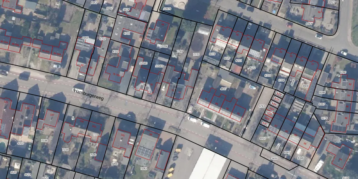 Het perceel waarop Hamburgerweg 72 staat heeft een oppervlakte van 468 m². Dit is een groot perceel. De perceeloppervlakte wordt geregistreerd door het Kadaster. Gedetailleerde informatie over de maten van dit perceel kunt u vinden in het rapport Kadastrale kaart met maatvoering van Hamburgerweg 72.