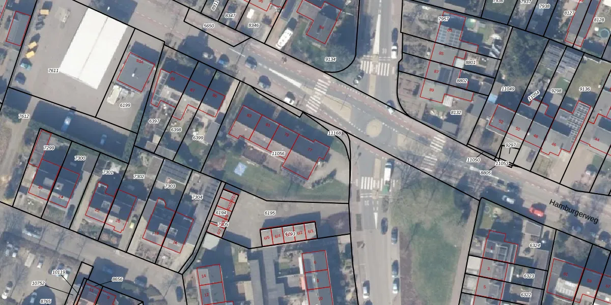 Hamburgerweg 77 is gelegen op kadastraal perceel EML00F11056. Deze kadastrale aanduiding is uniek en wordt gebruikt door het Kadaster om eigendomsrechten en andere zakelijke rechten vast te leggen. Het perceel maakt onderdeel uit van de kadastrale gemeente Ermelo.