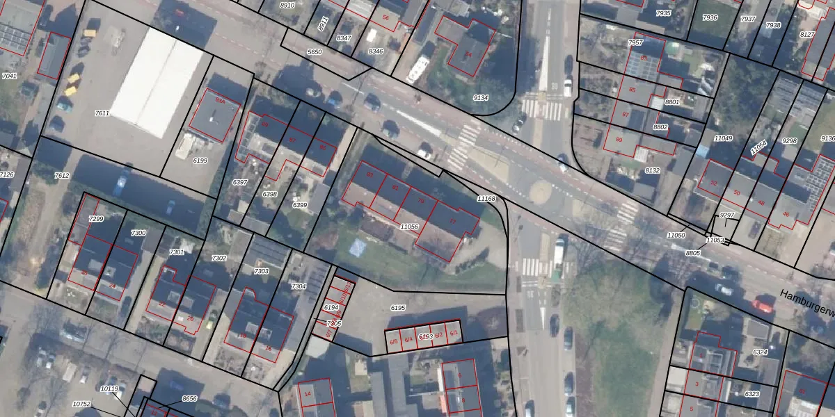Het perceel waarop Hamburgerweg 79 staat heeft een oppervlakte van 1256 m². Dit is een zeer groot perceel. De perceeloppervlakte wordt geregistreerd door het Kadaster. Gedetailleerde informatie over de maten van dit perceel kunt u vinden in het rapport Kadastrale kaart met maatvoering van Hamburgerweg 79.