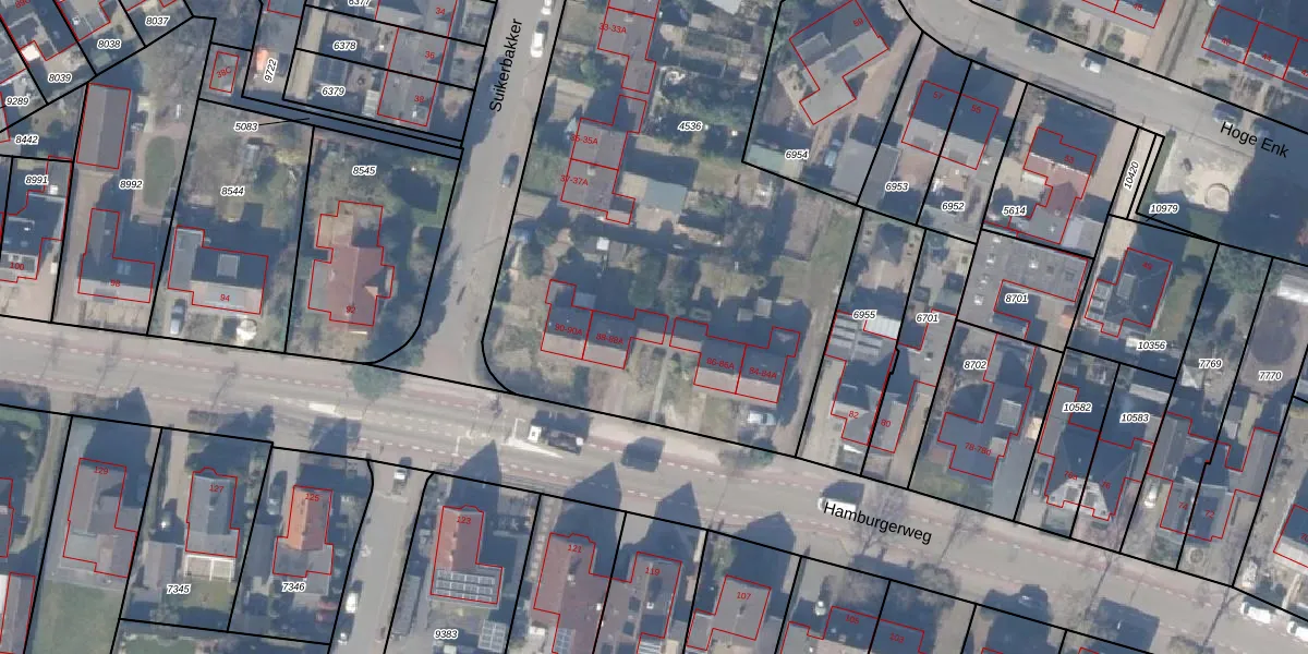 Het perceel waarop Hamburgerweg 84-a staat heeft een oppervlakte van 3710 m². Dit is een zeer groot perceel. De perceeloppervlakte wordt geregistreerd door het Kadaster. Gedetailleerde informatie over de maten van dit perceel kunt u vinden in het rapport Kadastrale kaart met maatvoering van Hamburgerweg 84-a.