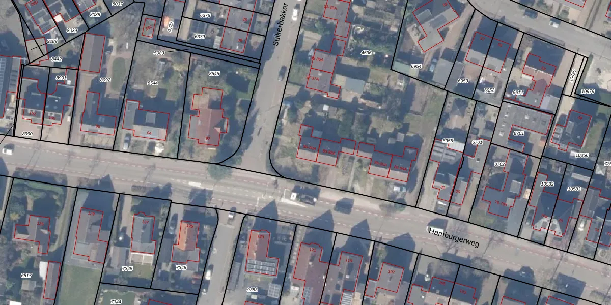 Het perceel waarop Hamburgerweg 90 staat heeft een oppervlakte van 3710 m². Dit is een zeer groot perceel. De perceeloppervlakte wordt geregistreerd door het Kadaster. Gedetailleerde informatie over de maten van dit perceel kunt u vinden in het rapport Kadastrale kaart met maatvoering van Hamburgerweg 90.
