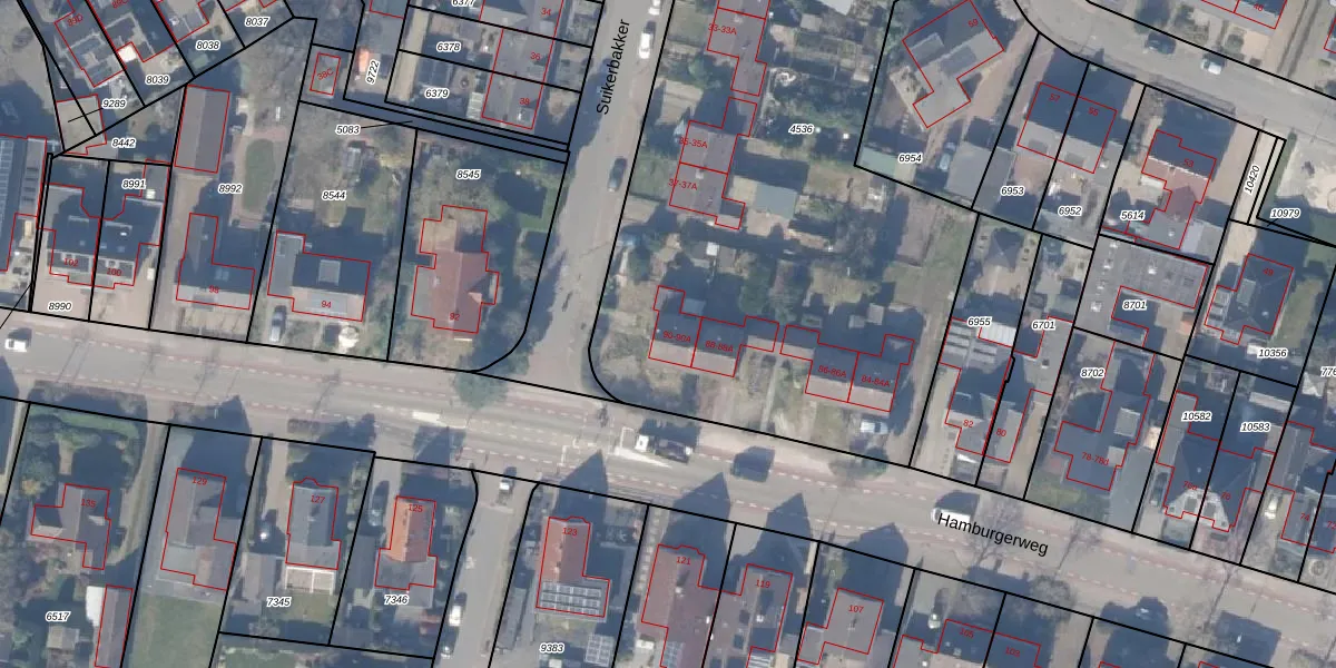 Het perceel waarop Hamburgerweg 90-A staat heeft een oppervlakte van 3710 m². Dit is een zeer groot perceel. De perceeloppervlakte wordt geregistreerd door het Kadaster. Gedetailleerde informatie over de maten van dit perceel kunt u vinden in het rapport Kadastrale kaart met maatvoering van Hamburgerweg 90-A.