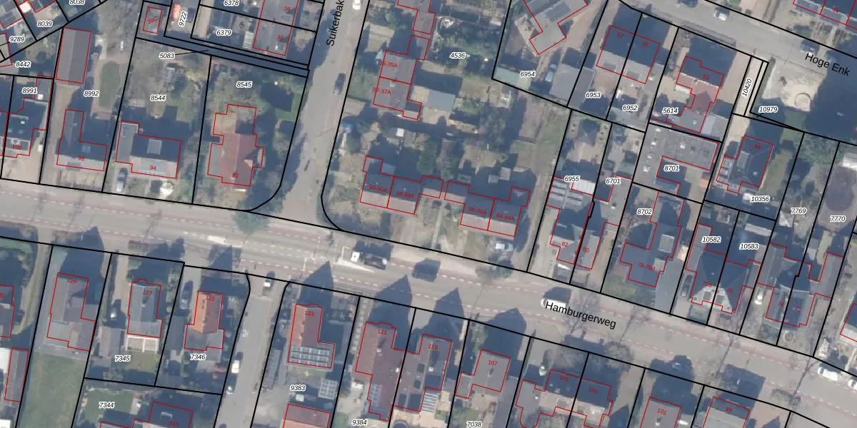 Het perceel waarop Hamburgerweg 90-a staat heeft een oppervlakte van 3710 m². Dit is een zeer groot perceel. De perceeloppervlakte wordt geregistreerd door het Kadaster. Gedetailleerde informatie over de maten van dit perceel kunt u vinden in het rapport Kadastrale kaart met maatvoering van Hamburgerweg 90-a.