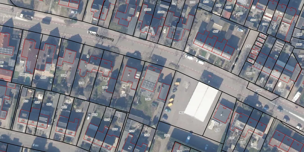 Het perceel waarop Hamburgerweg 99 staat heeft een oppervlakte van 803 m². Dit is een groot perceel. De perceeloppervlakte wordt geregistreerd door het Kadaster. Gedetailleerde informatie over de maten van dit perceel kunt u vinden in het rapport Kadastrale kaart met maatvoering van Hamburgerweg 99.