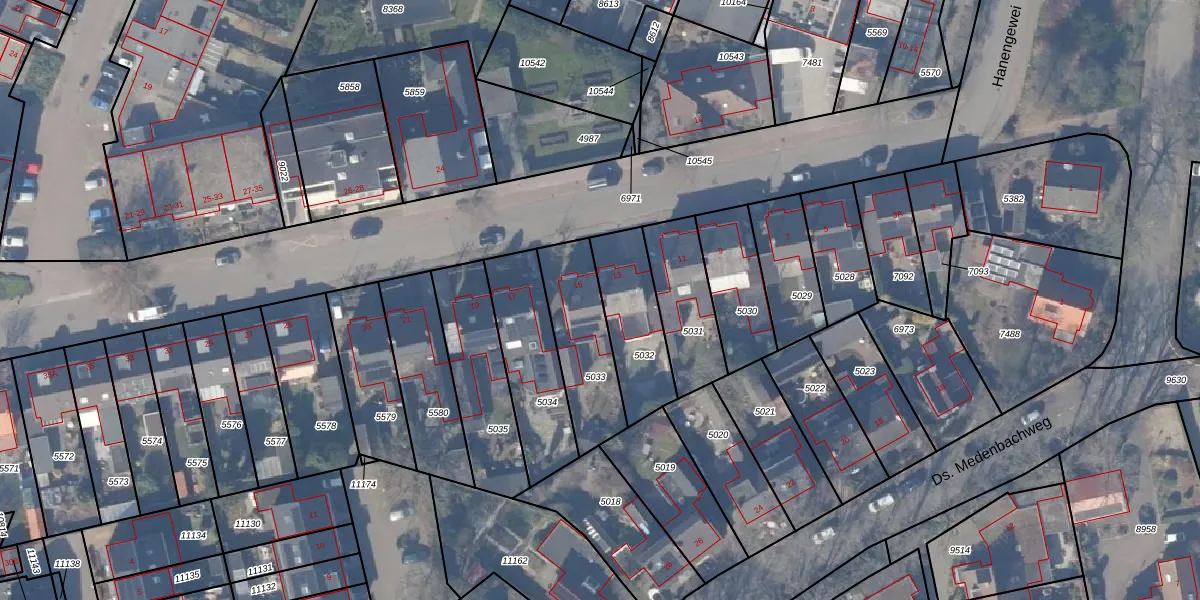 Het perceel waarop Hanengewei 15 staat heeft een oppervlakte van 304 m². Dit is een groot perceel. De perceeloppervlakte wordt geregistreerd door het Kadaster. Gedetailleerde informatie over de maten van dit perceel kunt u vinden in het rapport Kadastrale kaart met maatvoering van Hanengewei 15.