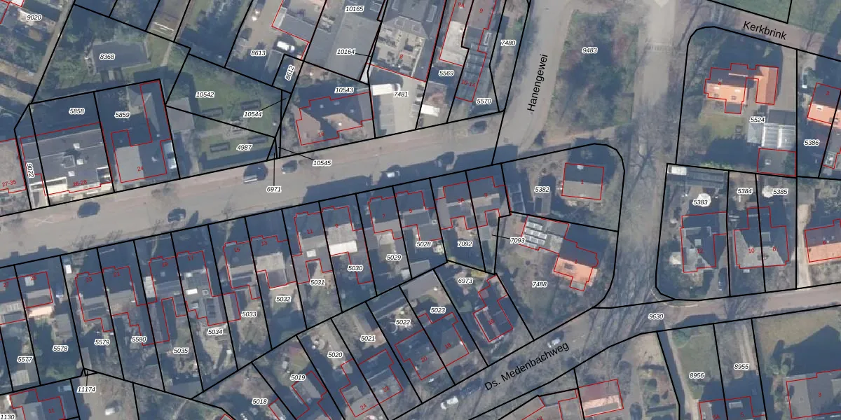 Gebruik de zoekbalk of klik op een perceel voor informatie over de adressen binnen dit perceel.