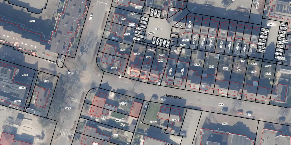 Het perceel waarop Hanengewei 68 staat heeft een oppervlakte van 164 m². Dit is een middelgroot perceel. De perceeloppervlakte wordt geregistreerd door het Kadaster. Gedetailleerde informatie over de maten van dit perceel kunt u vinden in het rapport Kadastrale kaart met maatvoering van Hanengewei 68.