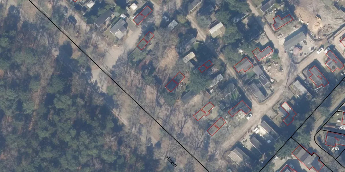 Het perceel waarop Haspel 35-56 staat heeft een oppervlakte van 4,1 ha. Dit is een zeer groot perceel. De perceeloppervlakte wordt geregistreerd door het Kadaster. Gedetailleerde informatie over de maten van dit perceel kunt u vinden in het rapport Kadastrale kaart met maatvoering van Haspel 35-56.
